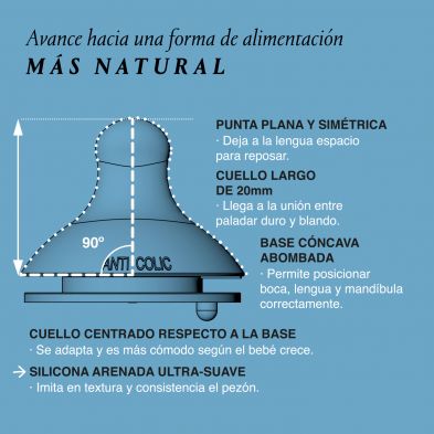 Biberón 270ml para bebés +3 meses, desde el nacimiento. La nueva tetina fisiológica Suavinex SX Pro es el paso definitivo hacia una alimentación más natural. Diseñada para respetar el desarrollo de la cavidad oral del bebé. La tetina fisiológica SX Pro consigue que la lengua se mantenga en la misma posición natural que cuando el bebé mama del pecho. Biberón de flujo medio que deja pasar todo tipo de líquidos de densidad media. Ideal para leche, zumos o agua. Tetina fabricada en silicona fina ultra-suave con acabado arenado que imita en textura y consistencia el pezón materno, consiguiendo: máxima calidez, un movimiento super flexible y la adaptación máxima a la forma del paladar. Con válvula anticólicos.