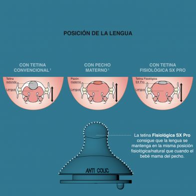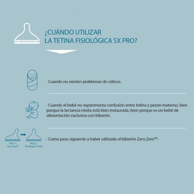Nuevo biberón con tetina fisiológica SX Pro de flujo medio