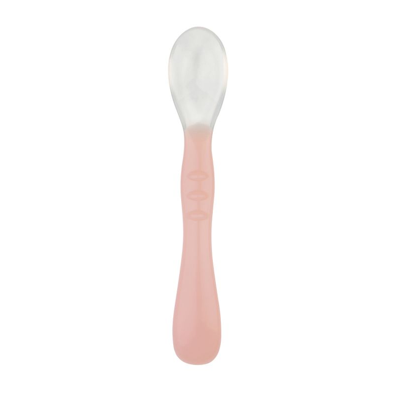 Silicona ultra-flexible para no irritar las encías. Mango estudiado para una mano de adulto, para que la mamá le dé de comer al bebé. Largo del mango adaptado a todos los tipos de potitos. “para no mancharse los dedos”.