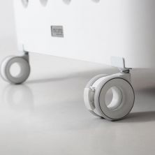 – 4 ruedas, 2 con freno y con una rodadura de goma de alta calidad, lo que evita daños en suelos delicados y parquet.