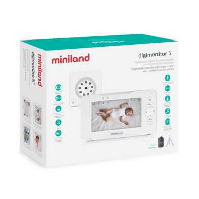Grandes prestaciones para una gran pantalla. El vigilabebés "Digimonitor 5" " garantiza amplitud de imagen y conexión sin interferencias gracias a su pantalla LCD de 5" y un alcance de conexión de hasta 230m. Creado a partir de tecnología bidireccional, podrás hablarle o cantar una canción para hacerle compañía desde la distancia mientras realizas otra actividad. Otras de sus grandes prestaciones son: zoom de pantalla, activación por sonido con función VOX e indicador luminoso, 5 melodías, alerta de temperatura de la habitación de tu bebé y conexión de hasta 4 cámaras.