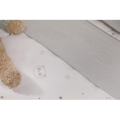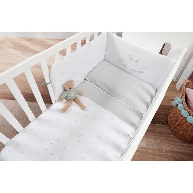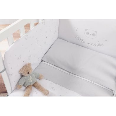 Este Kit textil de la colección Little Panda de 120cm, está compuesto por un nórdico y protector de cuna y está confeccionado en algodón 100%.