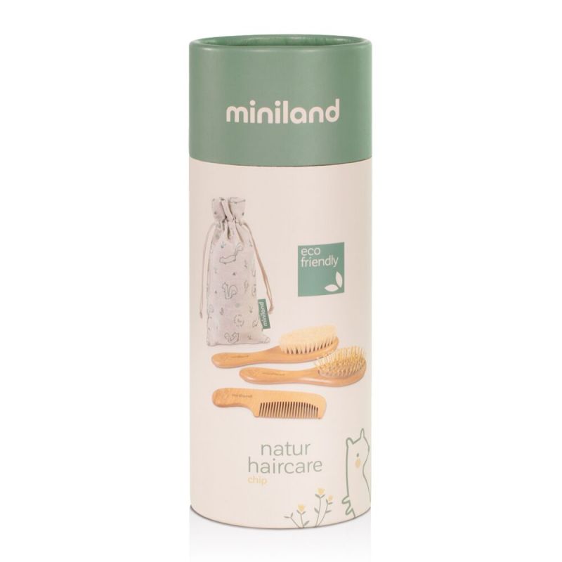 El juego de cepillos y peine están realizados en madera y otros componentes 100% naturales para un cuidado delicado del bebé sin tirones. Son antiestáticos, no quiebran el cabello y además respetan el medio ambiente.