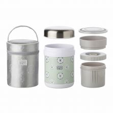 Mantiene el calor (o el frío) durante 12 horas. Con boca muy ancha para facilitar tanto su llenado como la toma de la comida. Incluye dos prácticos y cómodos recipientes herméticos. Incluye una cómoda bolsa para su transporte.
