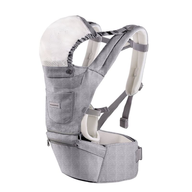 • El cinturón ancho y el asiento para la cadera ayudan a distribuir uniformemente el peso del bebé desde la cintura hasta la parte superior de la espalda;
