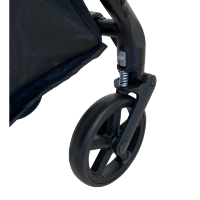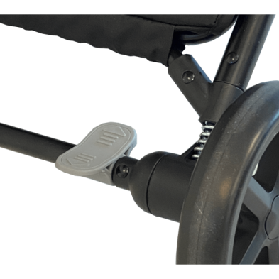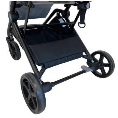 Aguanta hasta 24 kg y tiene ruedas todo terreno y eje de freno extraíble, reposapiés y manillar regulables en altura.