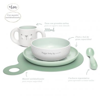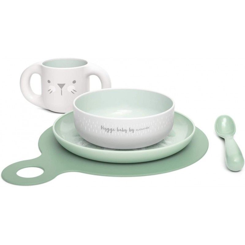 Vajilla aprendizaje para bebés Suavinex perfecta para cuando tu bebé está aprendiendo a comer solito. Para bebés +6 meses. Contiene 5 piezas. Incluye: · Plato llano de gran capacidad. · Bol de gran capacidad. · Taza con grandes asitas para un agarre más cómodo. · Cuchara ergonómica para que tu bebé aprenda a comer solito. · Mantel antideslizante para mayor seguridad. Vajilla apta para microondas y lavavajillas. Fabricada en un material irrompible por su tu bebé la tira al suelo. Esta vajilla es parte de la nueva colección Suavinex Hygge. La línea de accesorios de alimentación Hygge está pensada para utilizar DENTRO y FUERA de casa. Su diseño innovador, de ligero peso y adaptado a manitas pequeñas consigue que APRENDER A COMER SOLO sea más fácil que nunca. ¡Convierte la hora de la comida en una experiencia agradable y divertida! Conócenos: Somos Suavinex, empresa especializada en el sector del cuidado del bebé y de la madre. Todos nuestros productos los elaboramos con mucho mimo y cariño por eso somos sinónimo de seguridad y confianza. Fruto del esfuerzo y la innovación constante ofrecemos un completo catálogo de productos con materiales libres de Bisphenol A y una propuesta cosmética para embarazadas, madres y bebés innovadora y de máxima calidad.