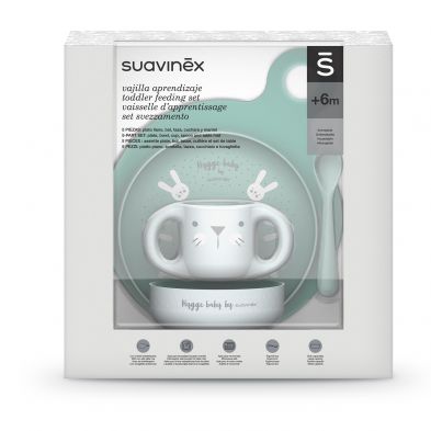 Vajilla aprendizaje para bebés Suavinex perfecta para cuando tu bebé está aprendiendo a comer solito. Para bebés +6 meses. Contiene 5 piezas.